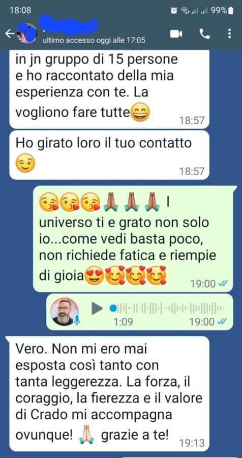 Anche io la pensavo come lui, che l’ ipnosi online fosse meno efficace, ma la sua affermazione mi ha aperto al pensiero di quanto potesse essere un mio pensiero limitante.